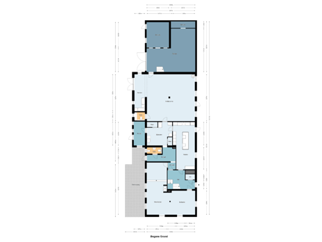 De begane grond beschikt over een riante multifunctionele ruimte die gebruikt kan worden als groot thuiskantoor, thuisgym en/of ontspanningsruimte. Deze ruimte is compleet uitgevoerd met airco, evt. toilet, pooltafel, zithoek én eigen kitchenette. De kitchenette is v.v. een Quooker, koelkast, vaatwasser. Ook is er een praktische bijkeuken met een nog een extra grote koelkast en vriezer, wasautomaat-aansluiting en extra bergruimte.
