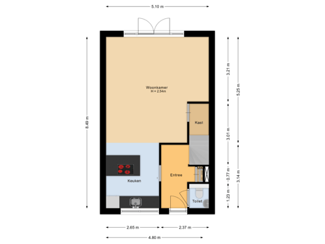 - 56 m² (8.00 metre deep and 7.00 metre wide)