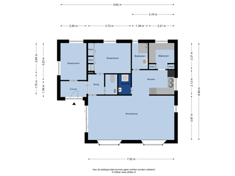 Stap binnen in de hal, waar je toegang hebt tot alle ruimtes: een apart toilet met fonteintje, twee fijne slaapkamers én de royale woonkamer.