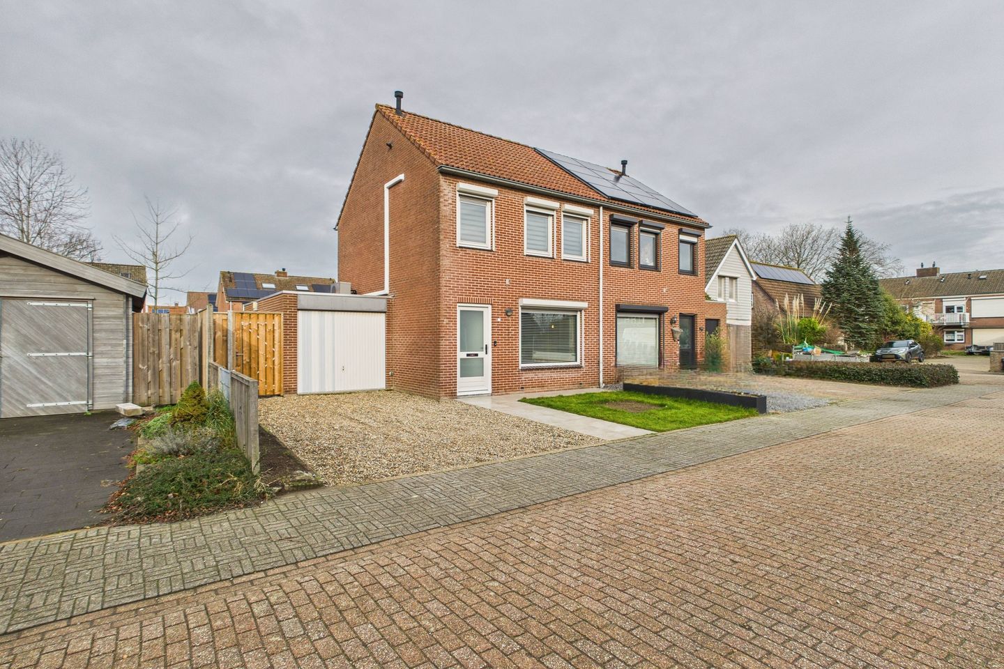 De achtertuin is fraai aangelegd en gelegen op het noordwesten. Hier wisselen nette terrassen en een verzorgd gazon elkaar af, waardoor er op verschillende momenten van de dag een fijne plek te vinden is om buiten te zitten. De vrije achterom maakt de tuin extra praktisch. Aan de voorzijde van de woning is een ruime oprit aanwezig, wat het parkeren gemakkelijk maakt.