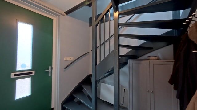 Zij-entree, ruime hal met toiletruimte voorzien van zwevend toilet en fonteintje, meterkast en trapopgang. Toegang tot de ruime woonkeuken en woonkamer.