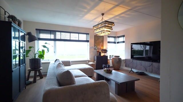 Aan de voorzijde is de ruime en lichte woonkamer met een nieuwe pvc vloer van 2025. Dankzij de brede raampartijen valt er veel daglicht naar binnen. De woonkamer biedt volop mogelijkheden voor een comfortabele zithoek. De open doorgang richting de keuken zorgt voor een fijne verbinding tussen wonen en koken. Aan de achterzijde van de woning is de keuken. De keuken uit 2018 is uitgerust met gaskookplaat, afzuigkap, inbouw combimagnetron, inbouw koelkast en een vaatwasser. Achter de keuken is de bijkeuken met een extra buitendeur. Dit is een ideale ruimte voor was apparatuur, voorraad of huishoudelijke spullen. Vanuit de bijkeuken loop je tevens direct door naar de garage. De grote garage van bijna 7 meter lang, heeft een elektrisch bedienbare sectionaldeur en biedt ruimte voor fietsen, hobby’s of uitgebreide opslag.