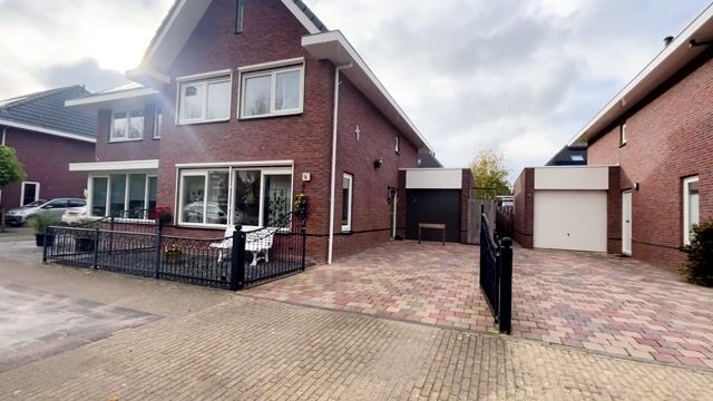De voortuin is eveneens keurig onderhouden en biedt plaats aan een oprit met parkeergelegenheid op eigen terrein. De woning beschikt daarnaast over een aangebouwde garage, die zowel via de oprit als de tuin bereikbaar is.