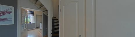 Via de voordeur kom je in de hal/entree met toilet (met fonteintje), meterkast, bergkast, trap naar boven en de toegang naar zowel de keuken als ook de kamer.