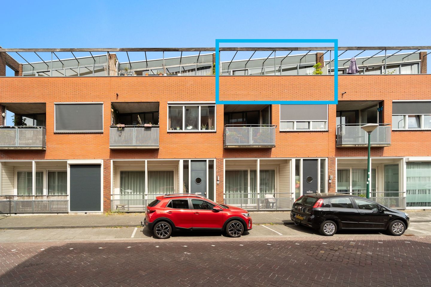 Het appartement bevindt zich op de bovenste verdieping. Via de galerij bereikt u de voordeur, die toegang geeft tot het appartement.