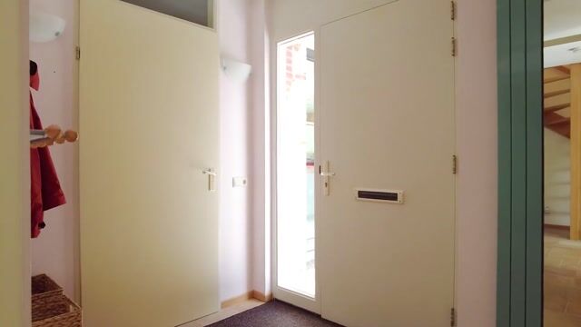 Via de verzorgde voortuin bereikt u de voordeur en komt u binnen in de ruime hal. Hier bevinden zich het hangend toilet met fontein, de meterkast en de toegang tot de woonkamer. De centrale ligging van de entree zorgt voor een prettige doorstroming naar alle begane grondruimtes. Parkeren kan op de oprit naast de woning of op een van de openbare parkeerplaatsen in de straat.