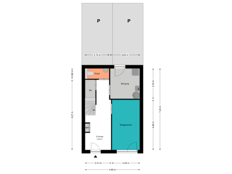 Voor de afmetingen en indeling raadpleeg de gedetailleerde plattegrond.