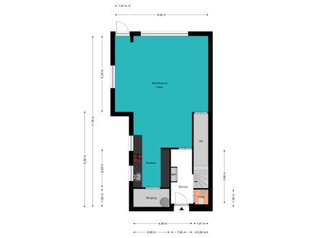 Voor de afmetingen en indeling raadpleeg de gedetailleerde plattegrond.