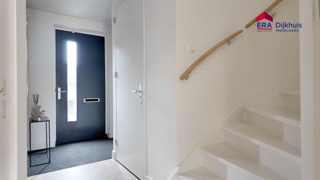 De entree geeft toegang tot de hal met trapopgang, meterkast en een modern toilet met hangend closet. Vanuit hier betreedt u de royale woonkamer, die circa 2,5 meter is uitgebouwd. Hierdoor is een bijzonder prettige leefruimte ontstaan, versterkt door het vergrote zijraam dat zorgt voor een fraaie lichtinval.