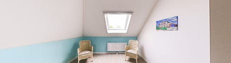 Het dakkapel zorgt voor extra ruimte en prettig lichtinval. Ook hier is vloerverwarming aanwezig. Uitgerust met een grote inloopdouche, wastafel in meubel en een designradiator.