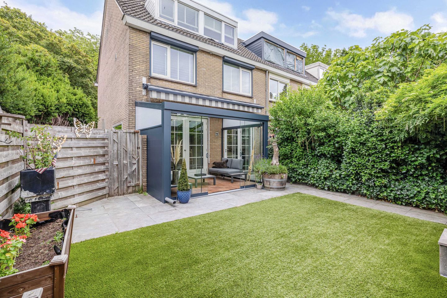- voor- en zijtuin, achtertuin op het westen, veel zon & privacy;