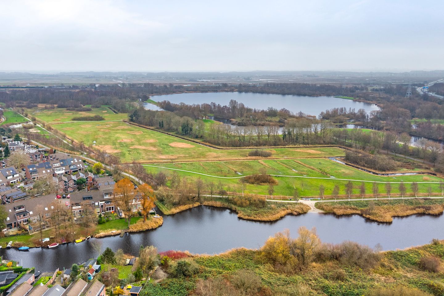Entrance, hallway with meter cupboard and separate toilet with washbasin. From the hallway there is access to both the living areas and the first floor. The living room is wonderfully light thanks to the pleasant natural light and the wide corner sliding doors with French doors opening onto the rear garden. Centrally positioned in the room, the gas fireplace and wood-burning stove form a warm and inviting focal point, with the seating area located on the garden side. The stunning and unique views over the water and surrounding greenery immediately create a holiday-like atmosphere.