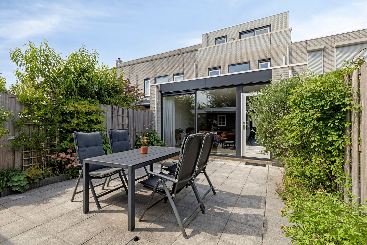Entree met hal, meterkast en trapopgang. Vanuit de hal bereik je de toiletruimte met hangend toilet en fonteintje, en een praktische trapkast voor extra bergruimte. De royale uitgebouwde woonkamer ligt aan de tuinzijde en heeft een grote pui met veel glas, waardoor het licht volop naar binnen valt. Dankzij de ligging op het zuiden geniet je hier de hele dag van de zon. De wanden en plafonds zijn strak afgewerkt en voorzien van hoge plinten. Aan de voorzijde bevindt zich de keuken, geplaatst in een praktische hoekopstelling. Deze is voorzien van een vriezer, koelkast, combimagnetron, gasfornuis, afzuigkap, vaatwasser en een natuurstenen werkblad. De zonnige achtertuin op het zuiden is een heerlijke plek om buiten te zijn. Achterin staat een ruime berging over de volle breedte van drie bij vijf meter, compleet met elektriciteit.