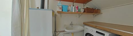 Op de zolder van de woning is er ruimte gecreëerd voor een wasmachine en cv-ketel. Dit betekent dat je boven ook nog eens extra opbergruimte hebt. Het is bijvoorbeeld handig om hier een strijkplank en stofzuiger neer te zetten.