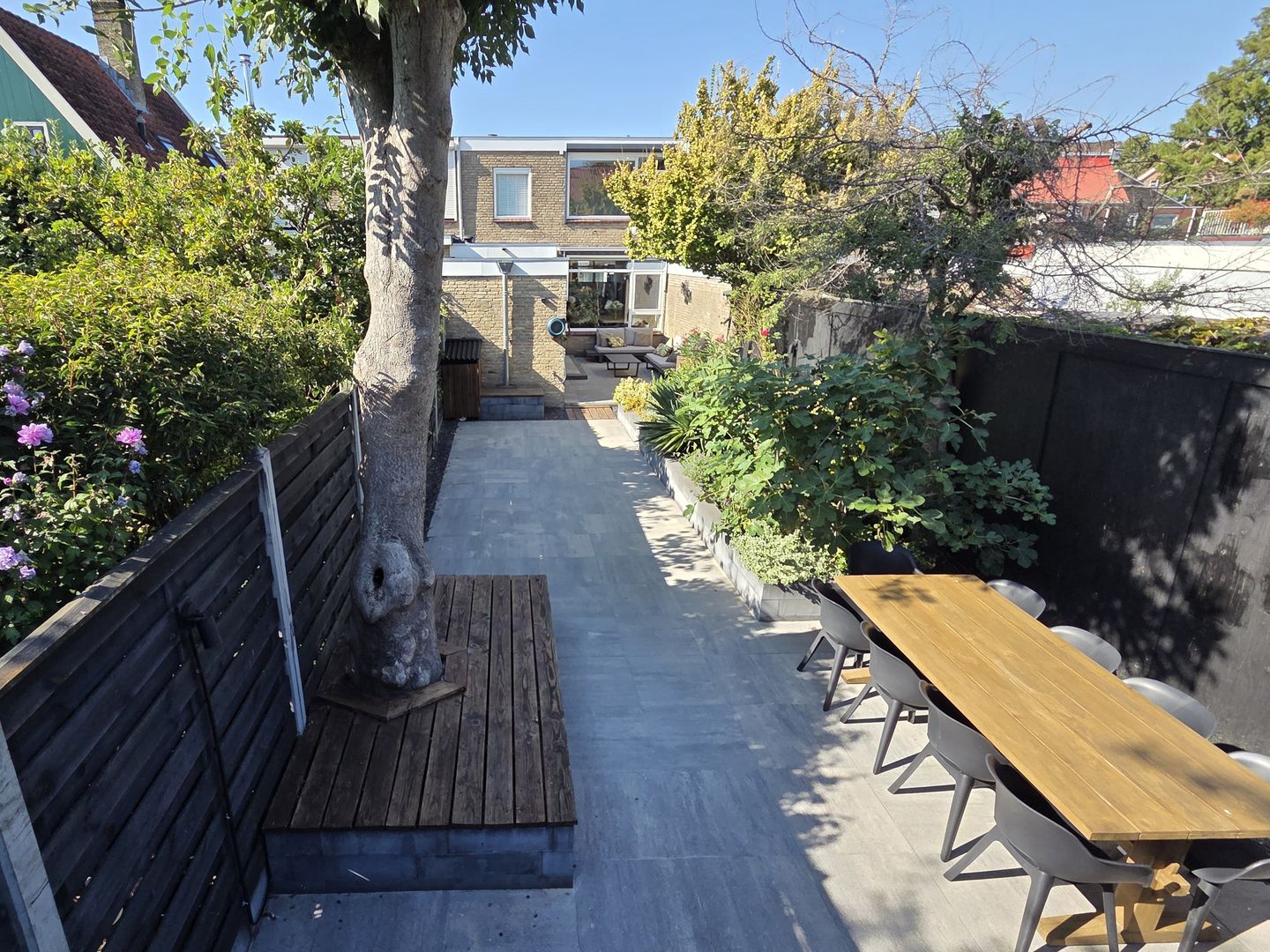 - diepe achtertuin ca. 20 meter diep en ca. 5,6 meter breed gelegen op het zuiden met geïsoleerde berging met vliering en overkapping c.q. serre;