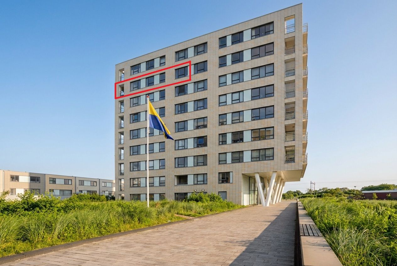 This modern three-room corner apartment is located on the 7th floor of the popular “Santfort” apartment complex, adjacent to the dunes and built in 2021. The high-quality finishes reflect contemporary standards of luxury and sustainability. The spacious, light-filled living room, the luxurious kitchen with an island and ceramic countertop, the plastered ceilings with dimmable recessed spotlights, and the balcony together form the heart of the home. Additionally, it features two comfortable bedrooms with custom-made wardrobes, a luxurious bathroom with a freestanding bathtub, a separate toilet, and a technical room with connections for a washing machine and dryer. In every room, you’ll enjoy comfortable underfloor heating that can be set independently per room. Extra comforts include your own storage room, a covered parking space, and a communal bicycle storage area in the basement.