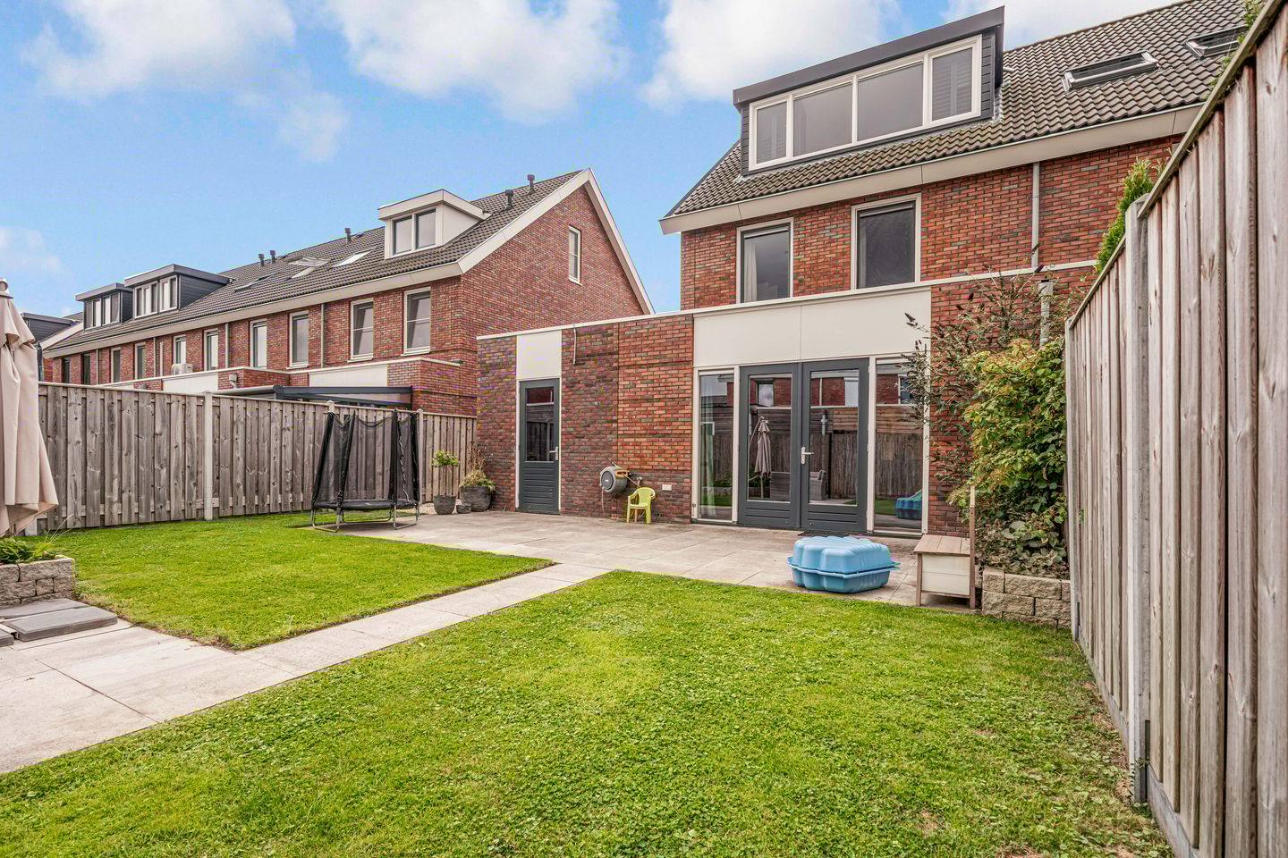 De achtertuin is royaal van opzet en praktisch ingericht met zowel een gazon als een verzorgd betegeld terras. De tuin biedt daarmee volop mogelijkheden om te ontspannen. Aan de voorzijde van de woning bevindt zich de garage met daaarnaast een eigen oprit, waardoor u altijd beschikt over voldoende parkeergelegenheid op eigen terrein. Bovendien is de voortuin sfeervol aangelegd en voorzien van een gezellig zitplekje.