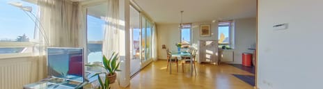 Allereerst een kijkje in de woonkamer. Meteen valt de prachtige lichtinval op door de raampartijen in de voor- en zijgevel in combinatie met de zonnige ligging. De woonkamer heeft daarnaast een warme sfeer door de parketvloer. Er is voldoende ruimte voor een gezellige zithoek en een eethoek. Vanuit de woonkamer heeft u zicht op de open keuken en bereikt u via een schuifpui het balkon.