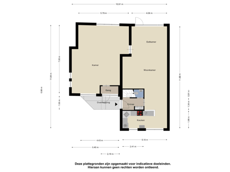 Begane grond: Overdekte entree, hal met trapopgang naar 1e verdieping, toilet met fontein, meterkast, half-open keuken, woonkamer met toegang naar de tuin, kantoor/praktijkruimte, hal met toegang naar de oprit.
