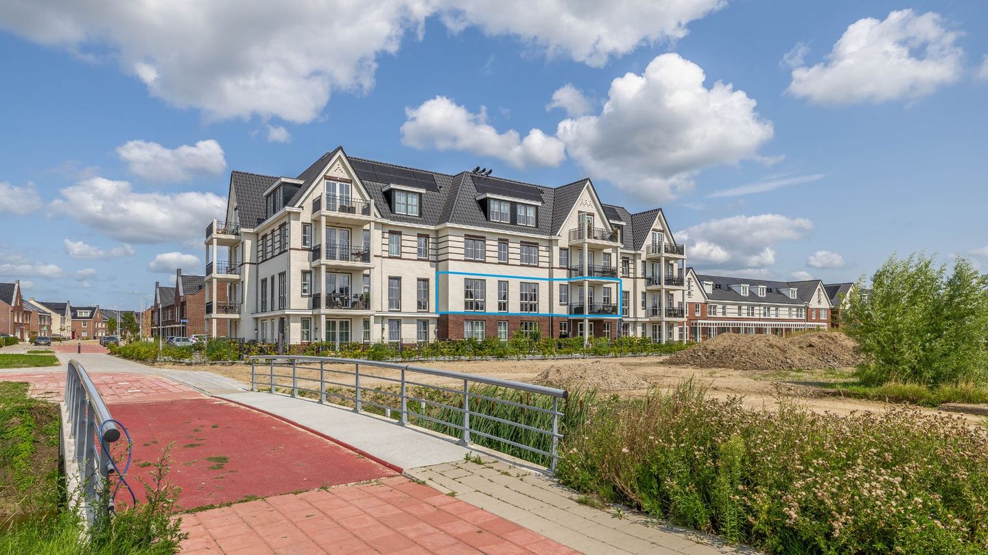 Het appartement beschikt verder over twee goed bemeten slaapkamers en een moderne badkamer met inloopdouche en dubbele wastafel. Daarnaast is er een praktische technische ruimte/berging met aansluitingen voor wasmachine en droger, de omvormer voor de zonnepanelen en de warmtepomp.