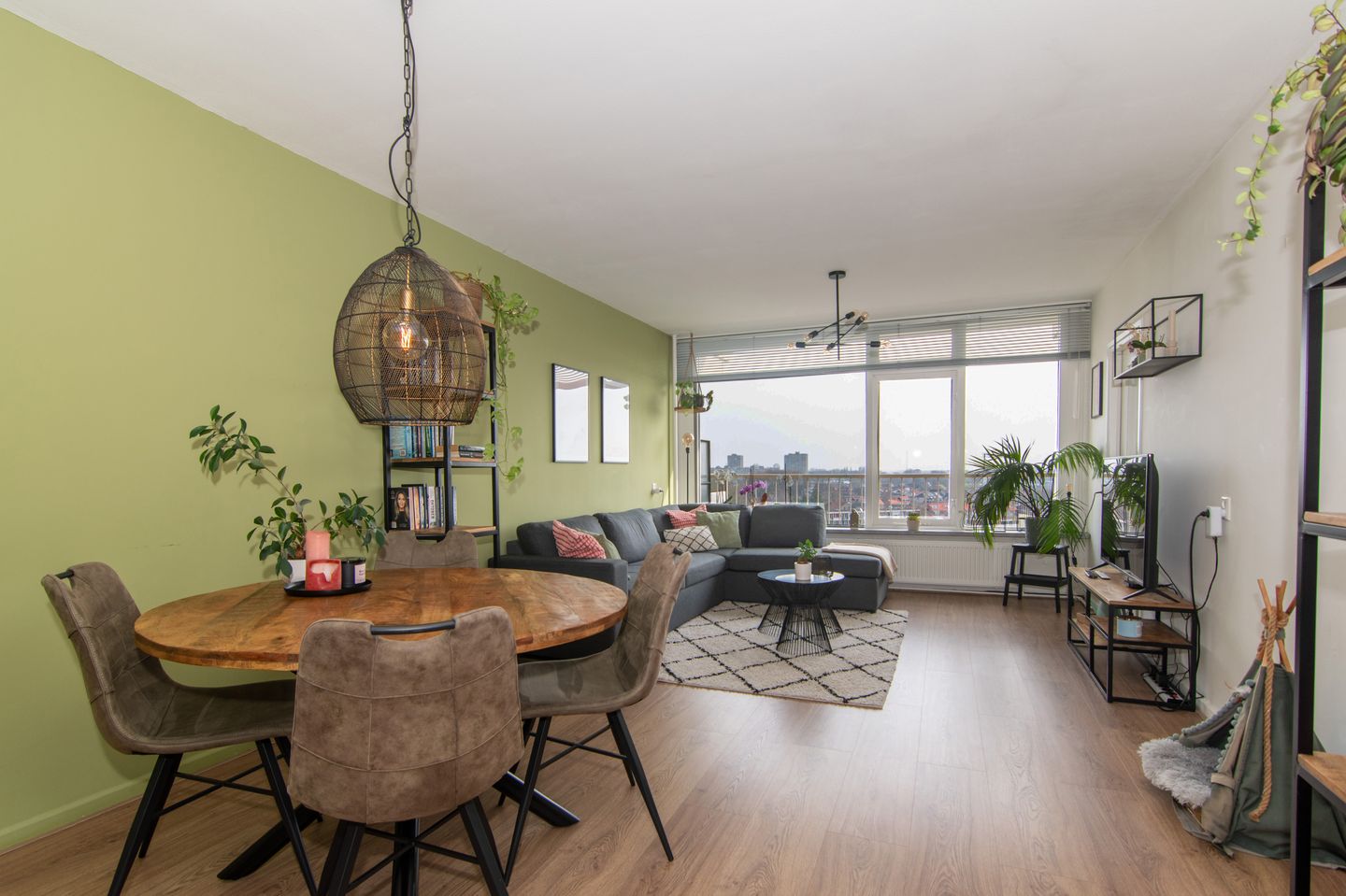 Op de 8e woonlaag gelegen 3 kamer hoekappartement met een royale woonkamer van ca. 28m², open keuken met moderne opstelling (2020), nette badkamer met douchecabine, laminaat vloerafwerking en een zonnig balkon op het zuidoosten.