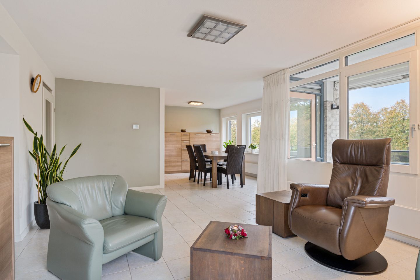 Vanuit de woonkamer stap je zo het ruime balkon op het zuidwesten op — een heerlijke plek om te genieten van de middag- en avondzon met uitzicht op het Burgemeester Hoekstrapark. Het balkon is netjes afgewerkt en voorzien van een elektrisch zonnescherm.