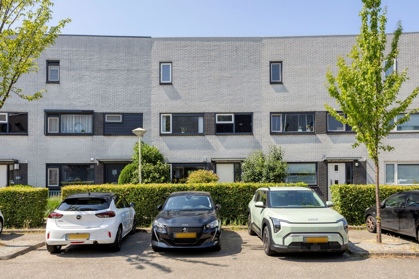 Met een plat dak en zonnepanelen heeft het huis een moderne uitstraling en parkeren doe je gewoon voor de deur. Geen gedoe met zoeken dus. Je kijkt niet uit op een rij auto’s, want er staat een groene haag voor. Die geeft je ook meteen een beetje extra privacy. Ook voor de fiets is in de voortuin voldoende plek of anders achterin de berging van bijna tien vierkante meter.