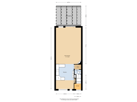 - 49 m² (10.00 metre deep and 4.90 metre wide)