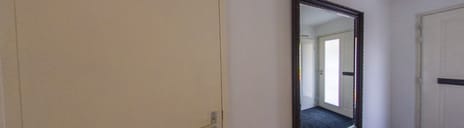 Trapopgang met daglicht via zijraam. Grote multifunctionele kamer/werkruimte van ca. 18 m² met afgesloten CV-ruimte en toegang tot het zonnige dakterras van ca. 11 m² op het zuidwesten. Ruime slaapkamer met lichtinval van drie zijden. Ook deze verdieping is voorzien van een laminaatvloer.