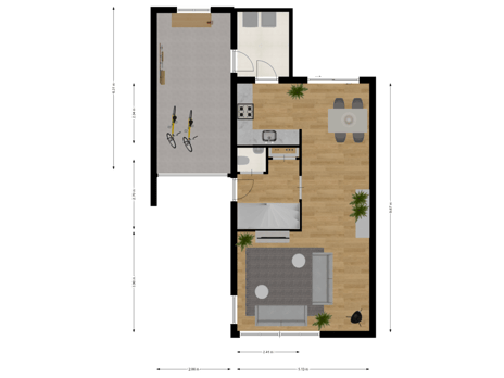 Entree-hal met garderobe en toilet; een lekkere ruime & lichte woonkamer met open leefkeuken (samen circa 40m2) en met een grote schuifpui dírect toegang tot het zonovergoten terras! De keukenapparatuur is in 2006 nog vernieuwd. Vanuit de keuken is er aansluitend een superhandige bijkeuken die is voorzien van alle witgoedaansluitingen en een extra keukenblok.