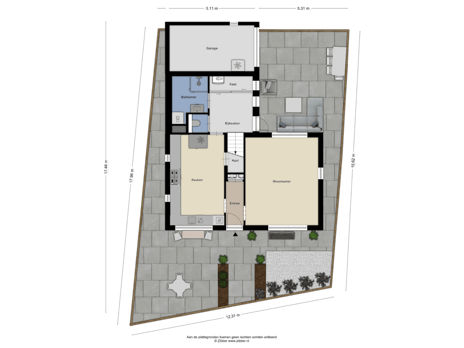 Aangrenzend vindt u de bijkeuken met een volledig betegeld toilet en de badkamer, welke beschikt over een inloopdouche, wastafelmeubel en de opstelling voor wasmachine en droger. De bijkeuken biedt daarnaast veel praktische bergruimte en plaats voor de cv-installatie. Verder bevindt zich hier de trapopgang naar de eerste verdieping en de achterdeur naar de tuin. De gehele verdieping is voorzien van vloerverwarming.
