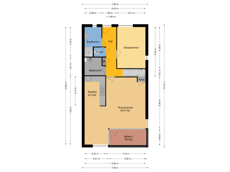 Bij binnenkomst in de hal treft u het toilet, de meterkast, een nette badkamer met inloopdouche en wastafel, een ruime slaapkamer en een praktische bijkeuken.