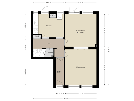Deze ruime benedenwoning heeft een eigen entree op de begane grond. De entree staat in verbinding met de ruime hal, waar je een garderobe en de trap naar de eerste verdieping ziet. Aan bergruimte is geen gebrek, onder de trap en in de inbouwkast.