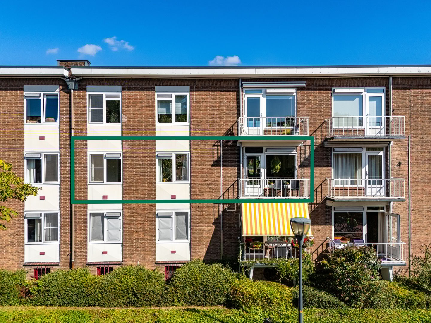 Aan de buitenzijde zijn de brievenbussen, het bellentableau en de intercom. Eenmaal binnen ga je met de trap naar de tweede verdieping, waar dit appartement gesitueerd is. Wat opvalt is de goede staat van het trappenhuis en de gezamenlijke ruimtes. Bij het appartement hoort een eigen (fietsen)berging, en het gebouw wordt omringd door een goed onderhouden tuin.
