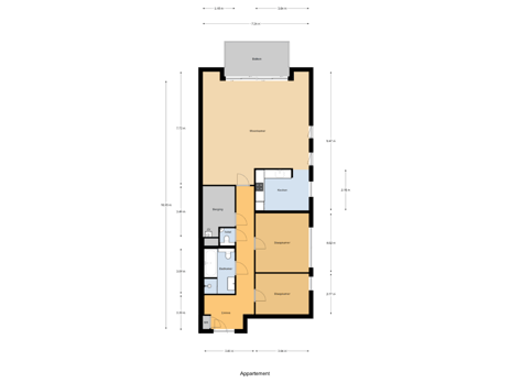 De keuken is uitgevoerd in een lichte kleurstelling en uitgerust met inbouwapparatuur, zoals koelkast, vaatwasser, recirculatiekap en inductiekookplaat. Verder beschikt het appartement over twee ruime slaapkamers, een nette badkamer met ligbad, douche, dubbele wastafel(meubel), spiegelkast en tweede toilet, en een ruime (grotendeels betegelde) bijkeuken/berging met aansluitingen voor wasapparatuur en de cv-/mv-installatie.