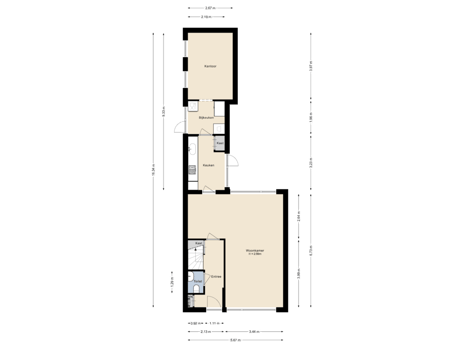 - Aanbouw met een keuken, bijkeuken en werkkamer;