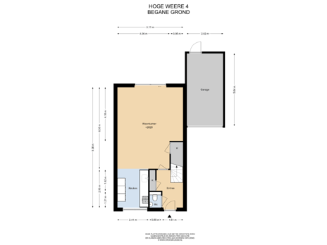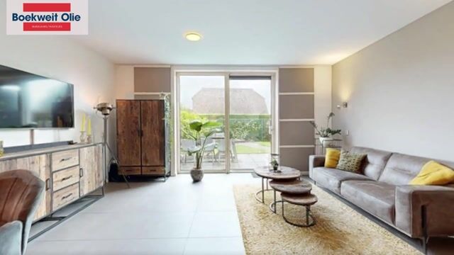 Indeling: hal met toilet, vaste kast en trapopgang, tuingerichte woonkamer met schuifpui, plavuizen vloer met vloerverwarming, vliesbehang wanden en pleisterwerk plafond, trapkast, open keuken met rechte unit en groot wandmeubel voorzien van inbouw 5-pits gaskomfoor, afzuigkap, vaatwasser, koelkast, vriezer, combi stoomoven, combimagnetron en koffiezetapparaat.