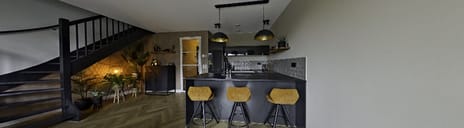 • De luxe open keuken is voorzien van inbouwapparatuur waaronder: Quooker, Bora inductiekookplaat, combi-oven, koelkast, vriezer en vaatwasser;