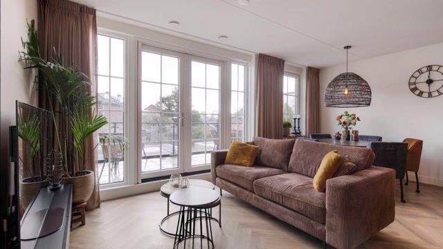 This move-in ready five-room apartment (maisonette style) is located on the first and second floors and offers almost 103 m² of living space with three bedrooms and a sunny roof terrace of no less than 14 m². The clever layout also allows for single-story living! The apartment is part of "De Wilgenburght," a luxurious and small-scale apartment complex (2022) with eight apartments, equipped with an elevator. The apartment includes a 5 m² outdoor storage unit and two numbered parking spaces in the private parking lot at the rear, which is secured by a barrier.