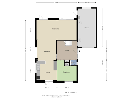 Woonkamer: 3,70 x 7,69m