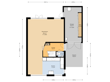 - Inpandige garage van ca. 18 m² (alleen buitenom bereikbaar)