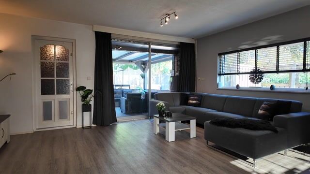 • De tuingerichte woonkamer heeft dankzij het zijraam en de brede schuifpui een uitstekende lichtinval.