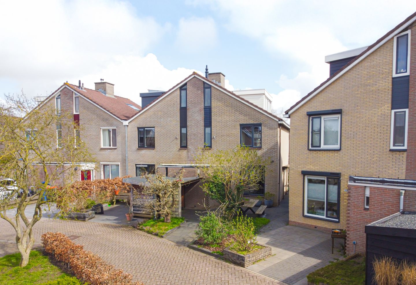 The property features both a well-maintained front and back garden. The front garden is neatly and low-maintenance landscaped with a combination of paving and greenery. A cozy seating area has been created at the front, where you can sit comfortably with a view of the quiet street. Next to the entrance is a practical canopy, ideal for storing items such as bicycles in the dry. The front garden also provides a pleasant distance from the street and contributes to the privacy and well-kept appearance of the home. The back garden faces east, allowing you to enjoy the sun here in the morning and early afternoon. The garden is furnished with a terrace, lawn, and flower borders, offering sufficient space to create multiple seating areas. At the back of the garden is a practical detached storage shed, and there is a back entrance, which increases convenience.
