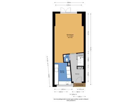 - 55 m² (11.00 metre deep and 5.00 metre wide)