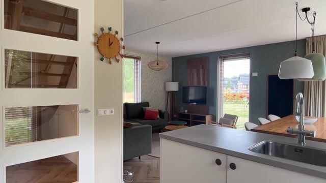 Deze luxe recreatiewoning van het type 6ELK ligt op een rustige locatie aan de rand van het park en biedt volop ruimte. Bij binnenkomst in de hal treft u een toilet en heeft u direct toegang tot de sfeervolle woonkamer met open keuken. De woonkamer is gezellig ingericht met een comfortabele zithoek en een ruime eettafel, perfect voor gezellige momenten met het gezin. Via de openslaande deuren stapt u zo het zonnige terras op – ideaal voor een ontbijt in de ochtendzon of een drankje aan het eind van de dag. De moderne open keuken is van alle gemakken voorzien, waaronder een vaatwasser, koelkast, combimagnetron en een Nespresso koffiemachine. Op de begane grond bevindt zich een ruime 2-persoonsslaapkamer met een aangrenzende badkamer, voorzien van douche en wastafel. Op de eerste verdieping vindt u twee slaapkamers, waaronder een gezellige kinderkamer. De tweede badkamer op deze etage is uitgerust met een douche, ligbad en wastafel. Voor extra comfort beschikt de woning ook over een sauna, waar u heerlijk kunt ontspannen na een actieve dag. Tevens is er op deze verdieping een separaat toilet aanwezig. Daarnaast beschikt de woning over een aangebouwde berging, ideaal voor het stallen van fietsen, koffers of buitenspeelgoed.