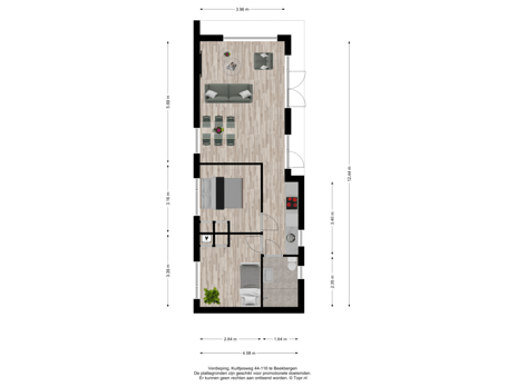 Het woonoppervlakte van 53,5 m2 is ingedeeld met een moderne keuken met inbouwapparatuur, een sfeervolle woonkamer, badkamer en twee slaapkamers. Alle vertrekken hebben vloerverwarming en zijn afgewerkt met PVC in een vergrijsd eiken kleur.