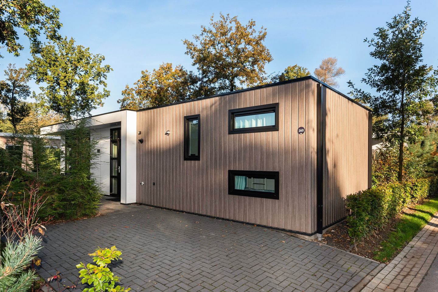 Zo goed als nieuw modern vrijstaande 6-persoons RECREATIEWONING, type "Module special 4 personen Wellness", gelegen op een perceel eigen grond van 265 m². Bouwjaar 2020, woonoppervlakte 55 m². De woning is modern afgewerkt en gelegen op een fris recent aangelegd vakantiepark. De woning is voorzien van een sauna, buitendouche en spa in de tuin. Rond de woning is een nette aangelegde tuin met een zonnig terras gecreëerd. Het chalet heeft een moderne opzet met verschillende materialen waardoor het een fraaie uitstraling heeft.