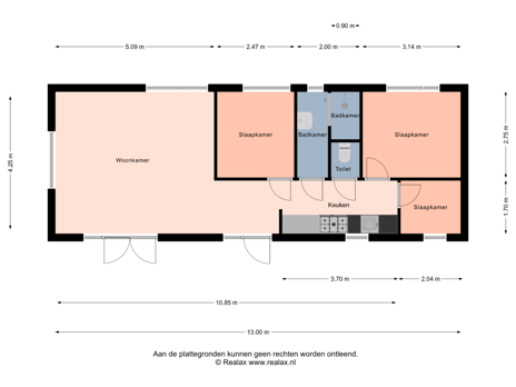 Indeling: Entree, hal, moderne open keuken keuken met ingebouwde vaatwasser, koelkast, diepvries, combi-magnetron en gaskookplaat, lichte woonkamer met dubbele terrasdeuren, 3 slaapkamers, badkamer met douchehoek, toilet en wastafelmeubel.