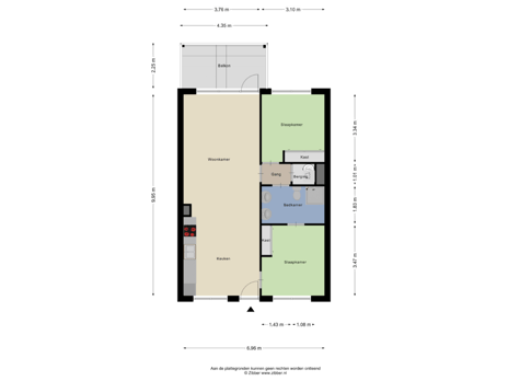 Layout: The house welcomes you with an open kitchen with warm wooden floors, which flows into a comfortable living room. From here, you can step right onto the sunny balcony of approx. 9 m², a wonderful place for a morning coffee or a glass of wine in the evening sun. The first bedroom is accessible via the kitchen and is located on the gallery side and has a direct connection to the bathroom. This bathroom is also accessible via the hallway and has a double sink, shower cabin, and toilet. The second bedroom is located at the rear of the apartment and is accessible via the hallway from the living room. This hallway also has a practical storage cupboard with connections for a washer/dryer and the boiler room.