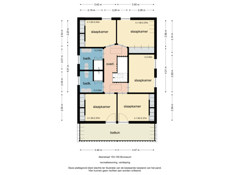 Slaapkamer VI: 3.42*2.54/2.20m.